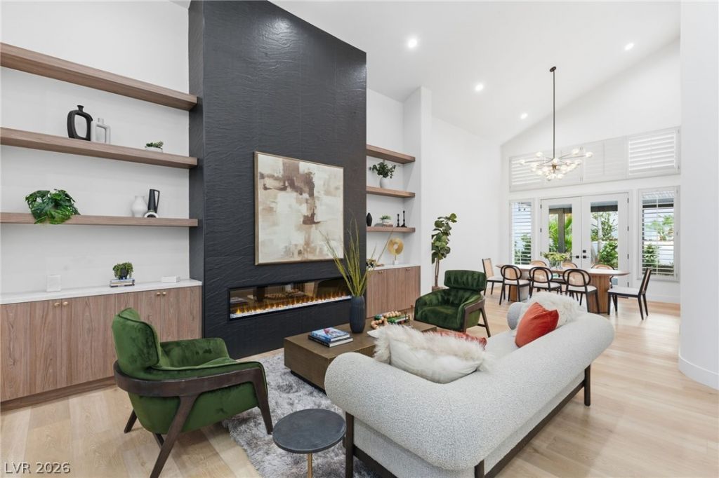 Reimagined with a modern edge, this 2-story luxury home offers 4,202 sq ft, 4 bedrooms, 4 baths, and a 3-car garage in guard-gated Canyon Gate Club. An abundance of natural light highlights new flooring, custom built-ins, updated fireplaces, and sleek designer finishes throughout. The chef's kitchen features top-of-the-line appliances, commercial-grade fridge/freezer, new sinks, and quartz countertops. The primary suite delivers a spa-like experience with a freestanding soaking tub, oversized dual-entry shower with two systems, and custom floor-to-ceiling closet. Outdoors, enjoy a redesigned pool and spa, new landscaping, built-in BBQ, and covered patio with awning. With new front and garage doors and refined upgrades throughout, this is a rare opportunity to own a fully renovated home in one of Las Vegas' most established golf course communities.